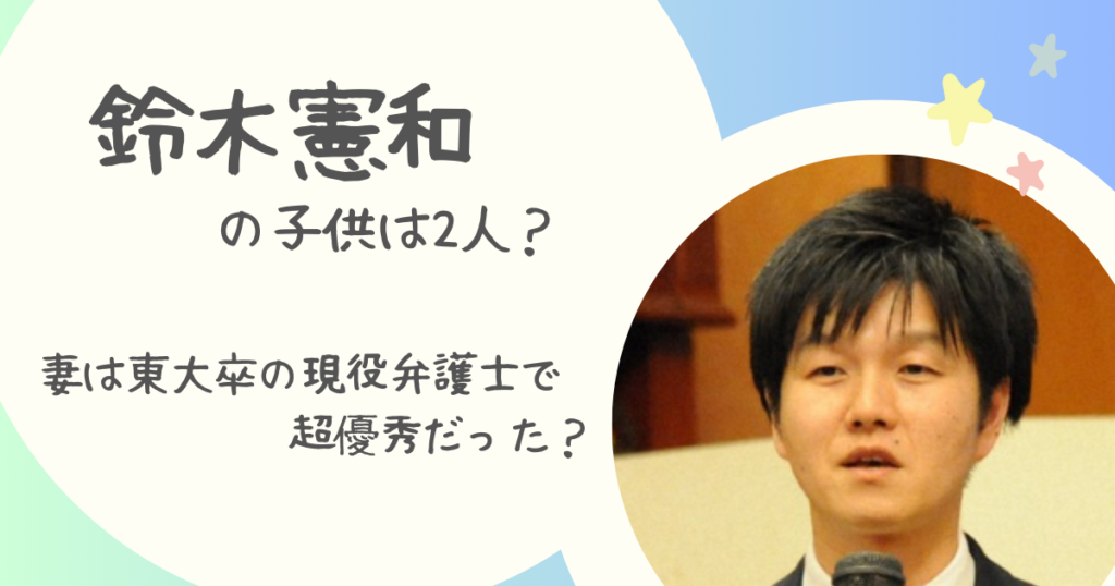 鈴木憲和の子供は2人?妻は東大卒の現役弁護士で超優秀だった?