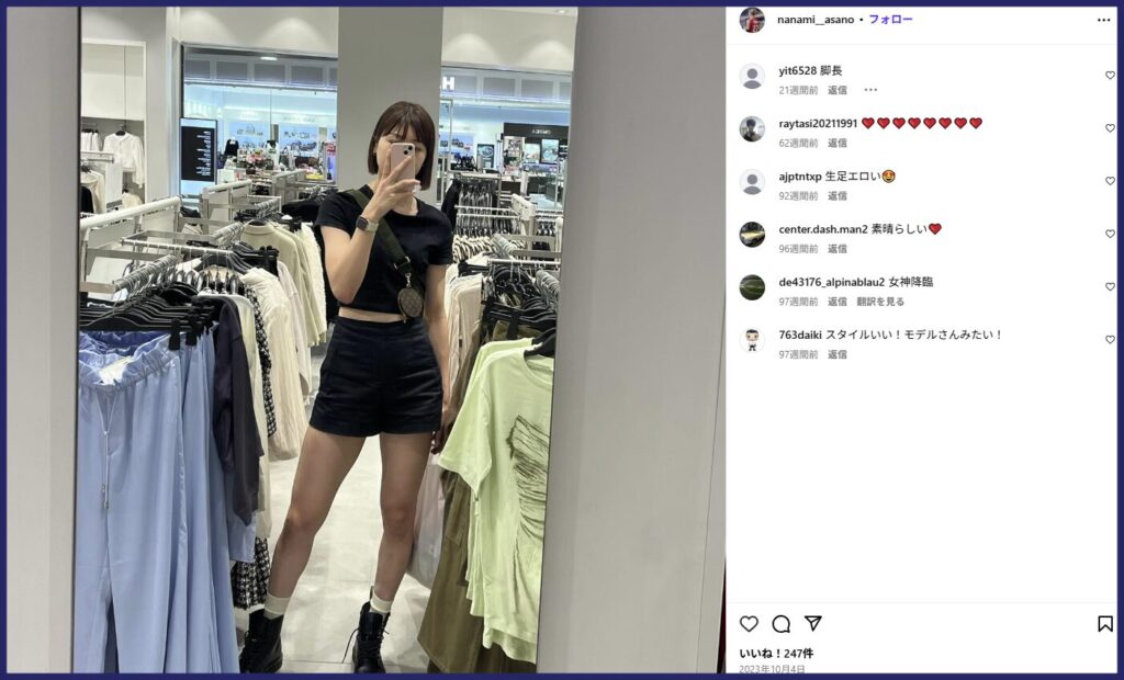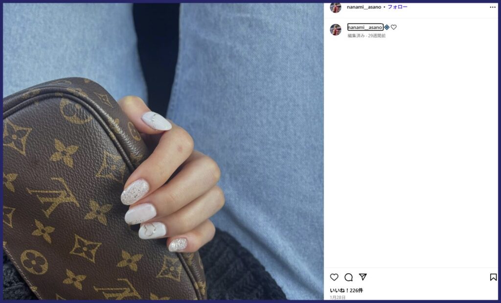 麻野七奈未さんのInstagramには、ファッションやネイルを楽しむ様子がたくさん投稿されています。