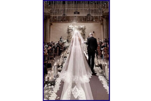 後ろ姿ですが、花嫁姿のちゃんみなさんと一緒にバージンロードを歩くのは父親かと思われます。