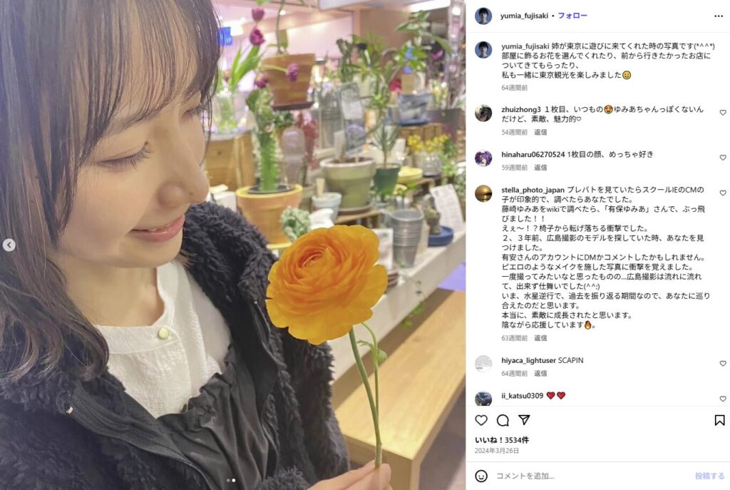 藤﨑ゆみあさんとは3歳差で年齢は20歳のため、現在は大学生や専門学生、働いているとしたら会社員かフリーランス、の可能性が高そうです。