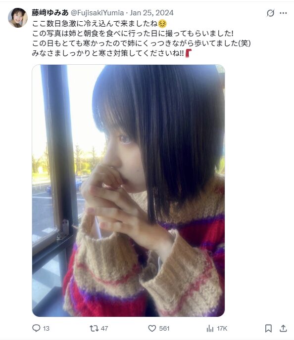 藤﨑ゆみあさんの整った顔立ちから、きっと姉も美人なんだろうなと想像できますね。