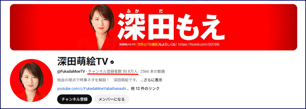このYouTubeチャンネルでは、深田萌絵さんが、政治や経済に関する世界情勢を独自に解説しています。