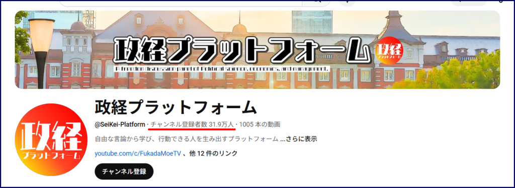また、深田萌絵さんは、YouTubeチャンネル「政経プラットフォーム」という別のチャンネルの運営もしています。