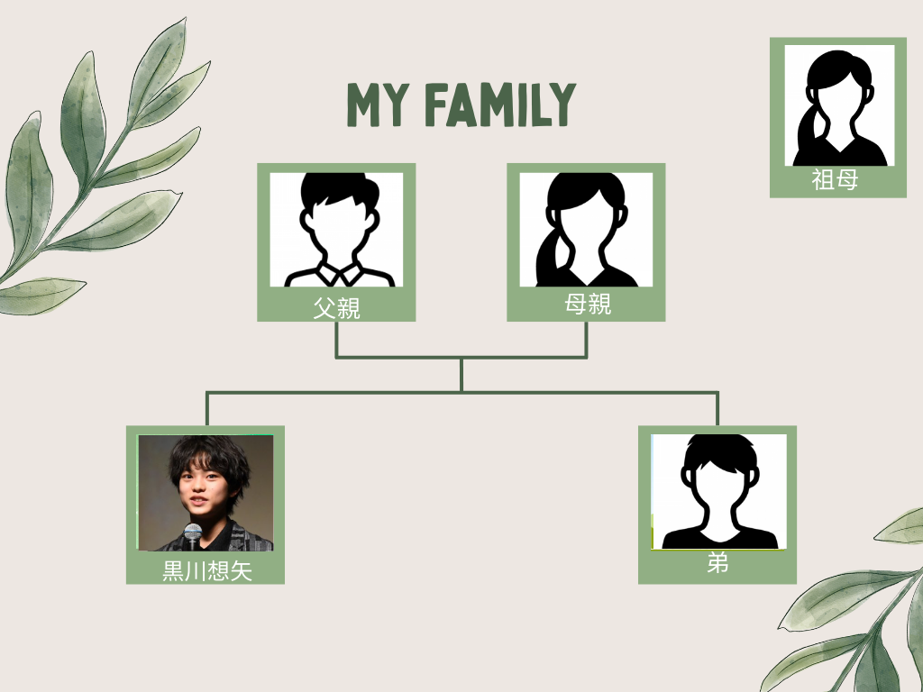 黒川想矢さんの家族構成は、以下の通りです。