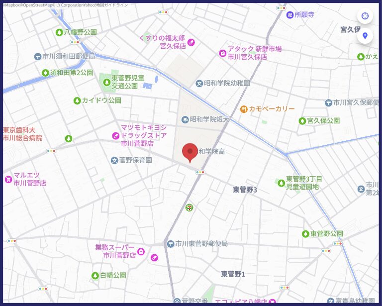 引用:地図 : 昭和学院中学校 – 市川市東菅野/中学校 | Yahoo!マップ