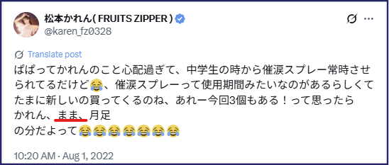 先程、松本かれんさんの父親は催涙スプレーを娘である松本かれんさんに持たせていたと紹介しました。