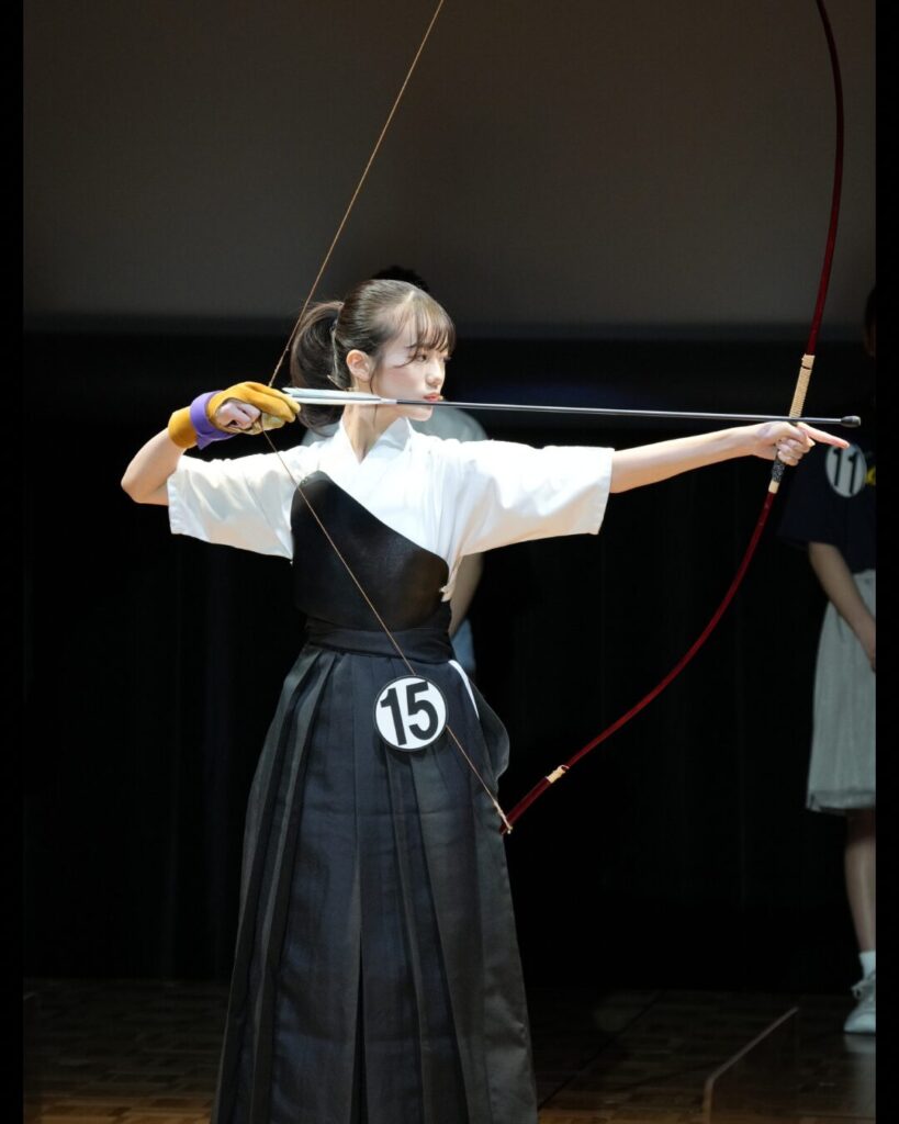 最終審査では、弓道着姿で弓を引く実技を披露し、見事にグランプリ獲得へとつなげました。