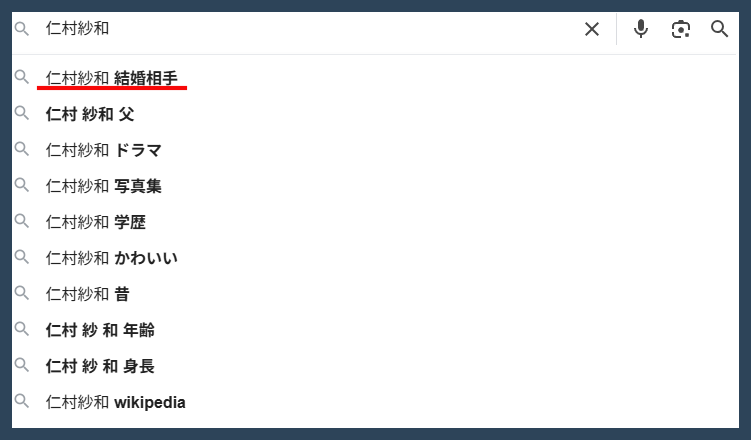 しかし、仁村紗和さんについて調べると、「結婚相手」という言葉が出てきます。