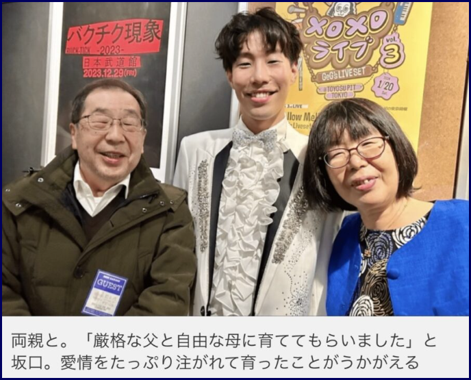 坂口さんの過去のインタビュー記事に、親子3人の写真がありました。
