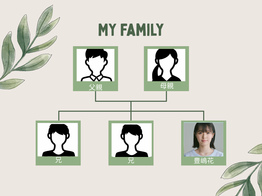 - 豊嶋花さんの家族構成は、5人家族で兄弟は兄が二人